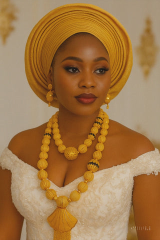 “Golden threads of tradition, woven with elegance. ✨💛 #RoyalGlow #GoldenCharm”